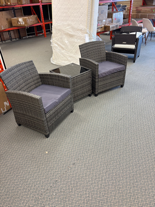 SPECIAL, 3 Pieces Outdoor Wicker with Tempered Glass Coffee Table - Grey (Fully Assembled)