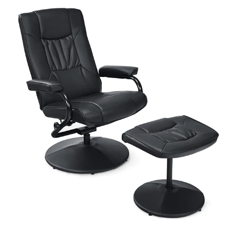 *SPECIAL* - Swivel Recliner Chair PVC Leather w/ Ottoman - Black (Color Mismatch)