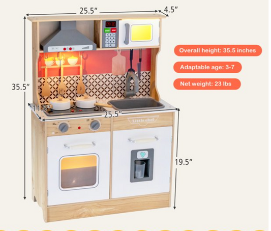 Wooden Kitchen Playset Multi-Functional Pretend Cooking Set w/ Lights & Sounds, 1 Box, unassembled