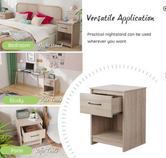 Wooden Nightstand with Drawer and Open Storage Compartment-Natural, fully assembled
