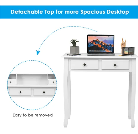 Writing Desk White Home Office Computer Desk 4 Drawer White, fully assembled