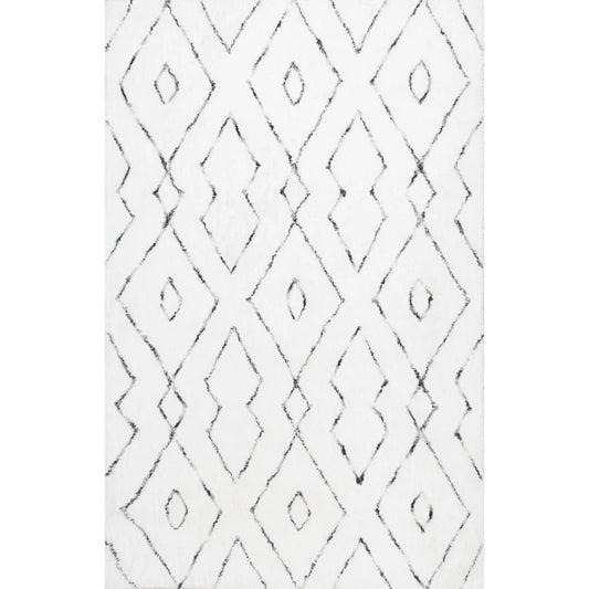 Sofie Geometric Handmade Tufted Area Rug in White - 5' X 8'
