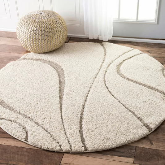 Allysa Abstract Shag Area Rug in Cream/Beige, 6ft round