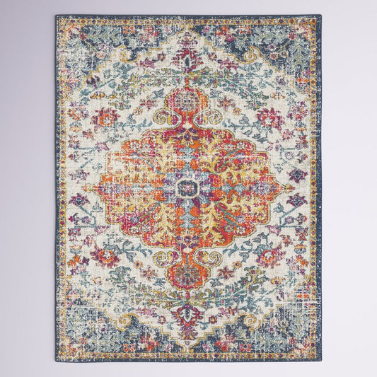 Saniya Medallion Blue/Orange Area Rug - 5'1 X 7'7`