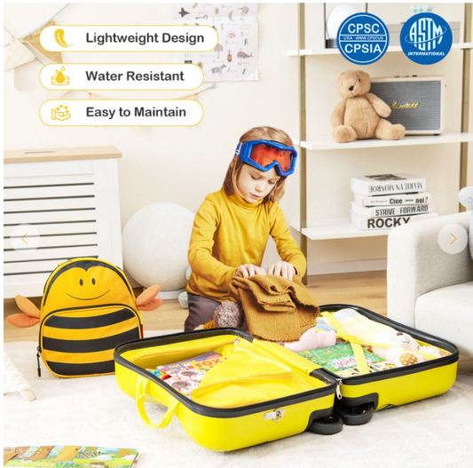 2 Pieces 18 Inch Ride-on Kids Luggage Set with Spinner Wheels, yellow