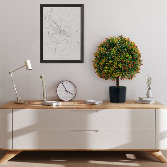 Artificial Boxwood Topiary Ball Tree with Orange Fruit, 1 PIECE