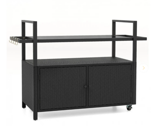 TAX FREE/SPECIAL - Bar Cart Wicker Buffet Serving Cart with Cabinet and 8 Hooks (See Decsription)