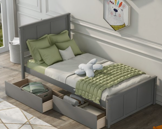 Twin Size Platform Bed with Two Drawers, grey, SPECIAL in box, scratch & dent