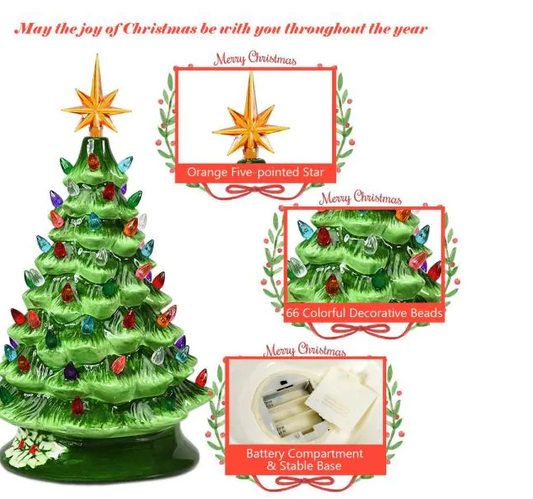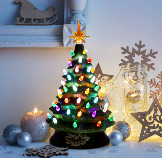 15'' Prelit Hand-Painted Ceramic Tabletop Christmas Tree