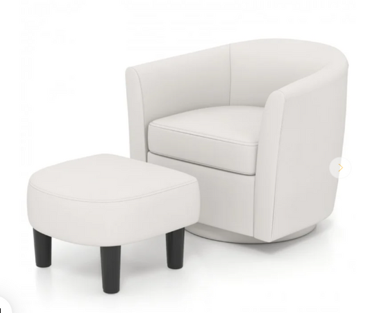 SPECIAL - Modern Club Swivel Accent Chair with Ottoman Footrest Curved Backrest (Cream White) [See Description]