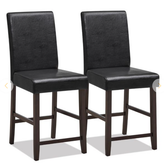 Set of 2 - 24``Counter Height Bar Stools with Rubber Wood Legs and Ergonomic Back
