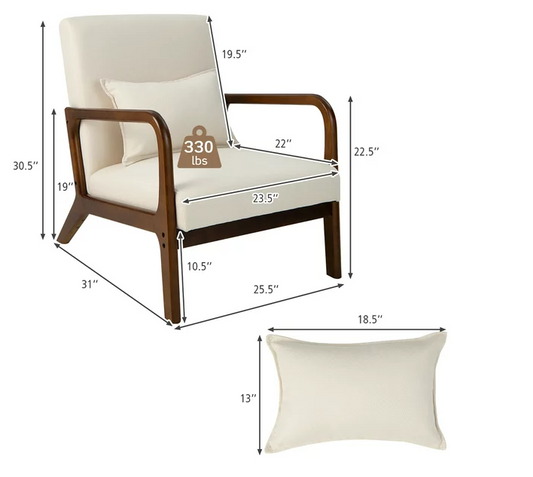 Modern Accent Chair Leisure Armchair with Rubber Wood Frame & Lumbar Pillow Beige, (Fully Assembled)