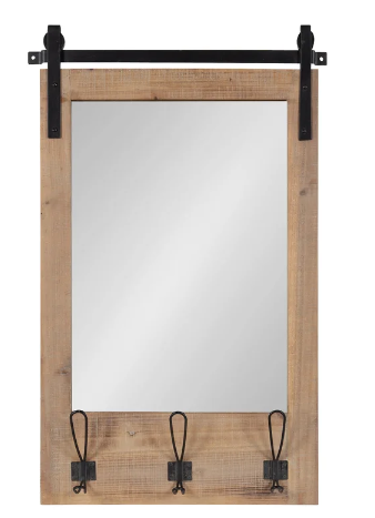 Enora Flat Wall Mirror with Hooks - Rustic Brown