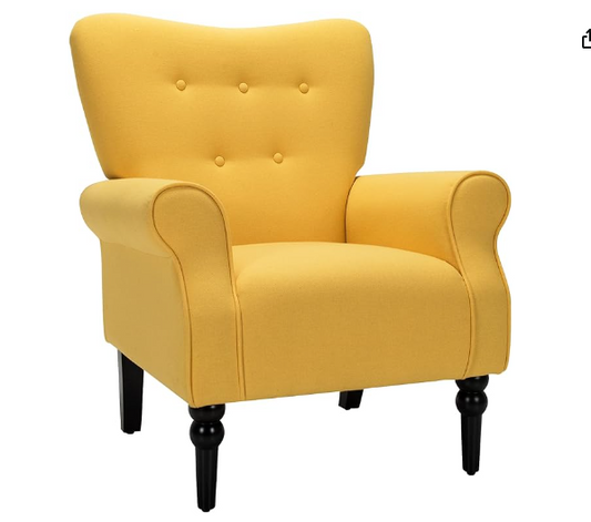 Comfortable Modern Chair w/Rubber Wood Legs, Yellow