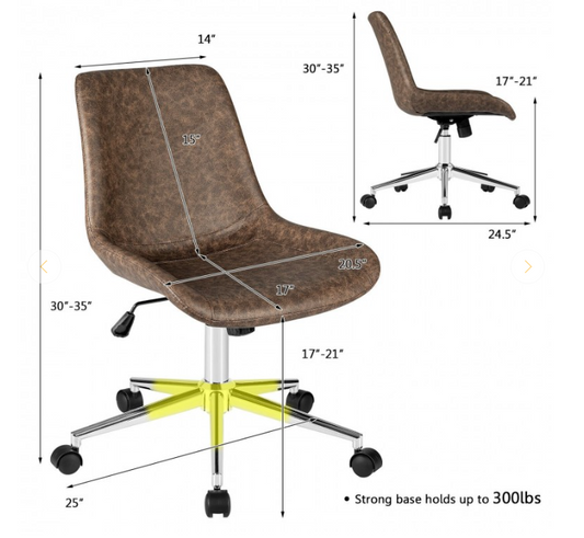 Vegan Leather Armless Adjustable Mid-Back Office Chair, Brown