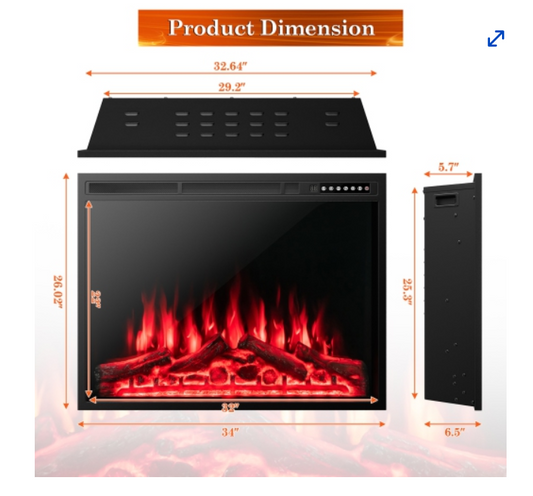 Large, 34"Electric Fireplace Heater Log Flame Effect w/ Remote Control 1500W, interior scratches