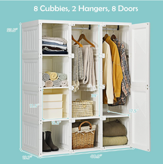 40.9” x 19.7” x 53.5”Foldable Plastic Closet with doors, assembled, special, small crack in back