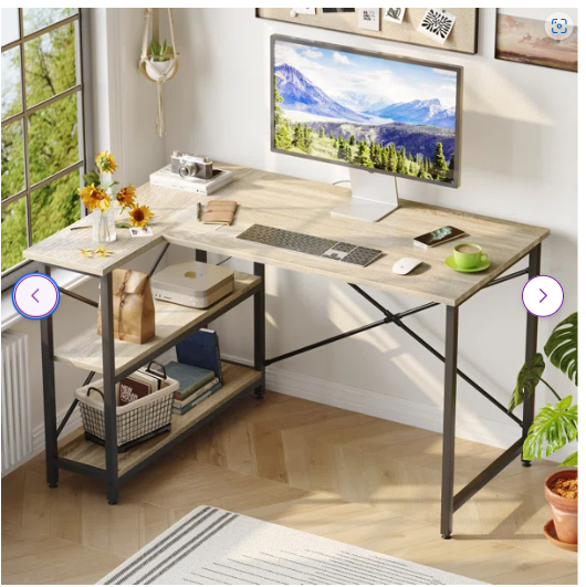 Reversible L Shaped Computer Desks with Adjustable Shelves (1 Box, Unassembled)