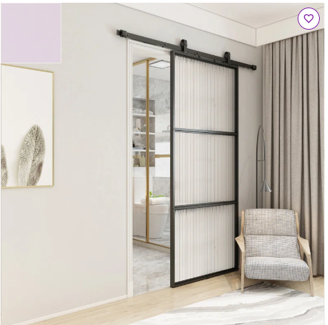 36" x 84" - Reeded Glass and Metal Barn Door with Installation Hardware Kit (1 Box)