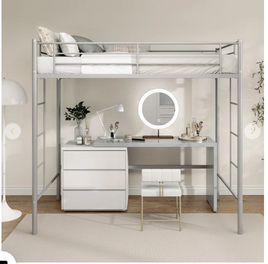 Twin Loft Bed Frame with 2 Ladders Full-length Guardrail - Silver (1 Box, Unassembled)