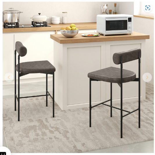 Counter Height Bar Stools, 26 Inch Upholstered Bar Chairs with Back - Grey