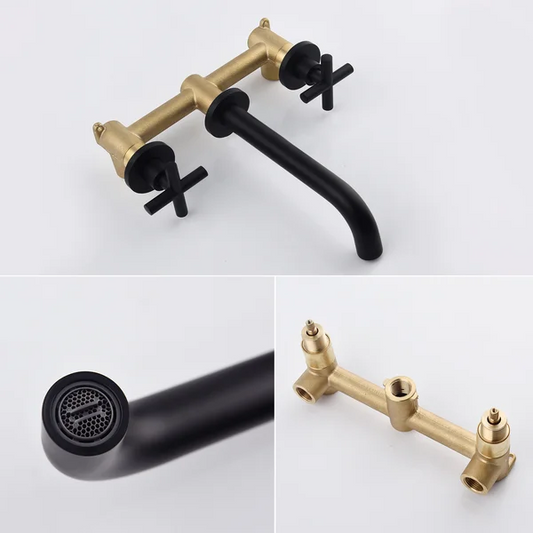 Wall Mouned Bathroom Faucet with Drain, matte black