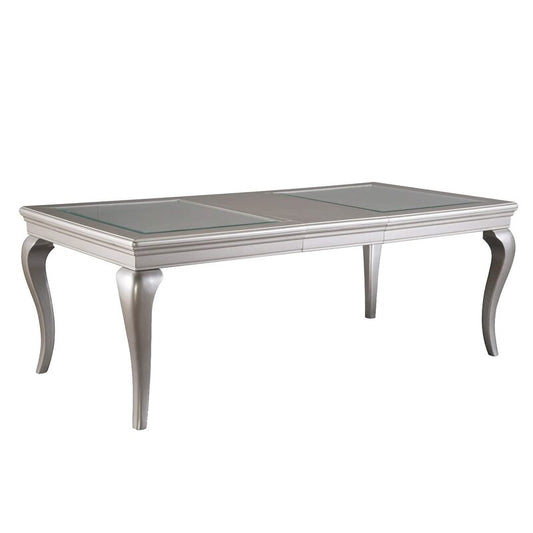 ELSA SILVER GREY FINISH DINING TABLE WITH GLASS & LEAF- CLEARANCE-