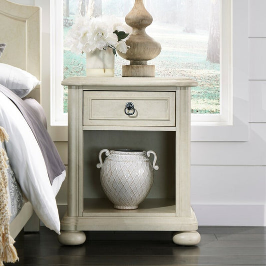 Tertius Upholstered Nightstand with USB - Champagne- big savings-slightly marked on top