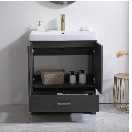 30" Ebony Mid Century Free-standing Single Bathroom Vanity Set