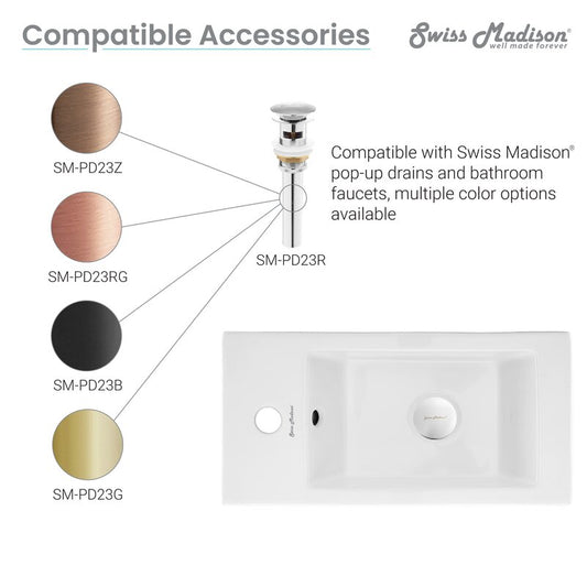 Voltaire Left Side Ceramic Rectangular Single Hole Faucet Bathroom Sink with Overflow