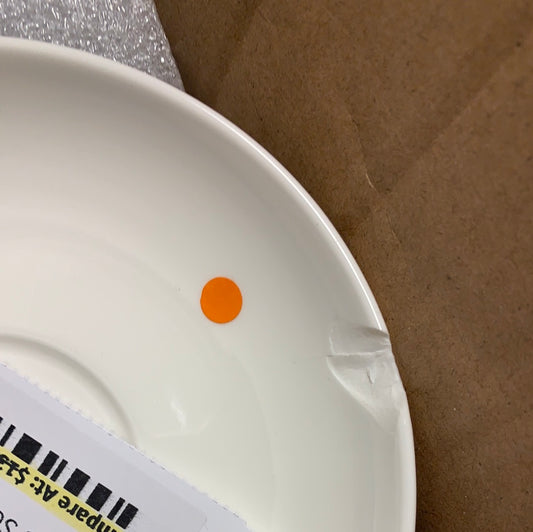 6 piece assorted hot colors cup/saucer - white saucer chipped
