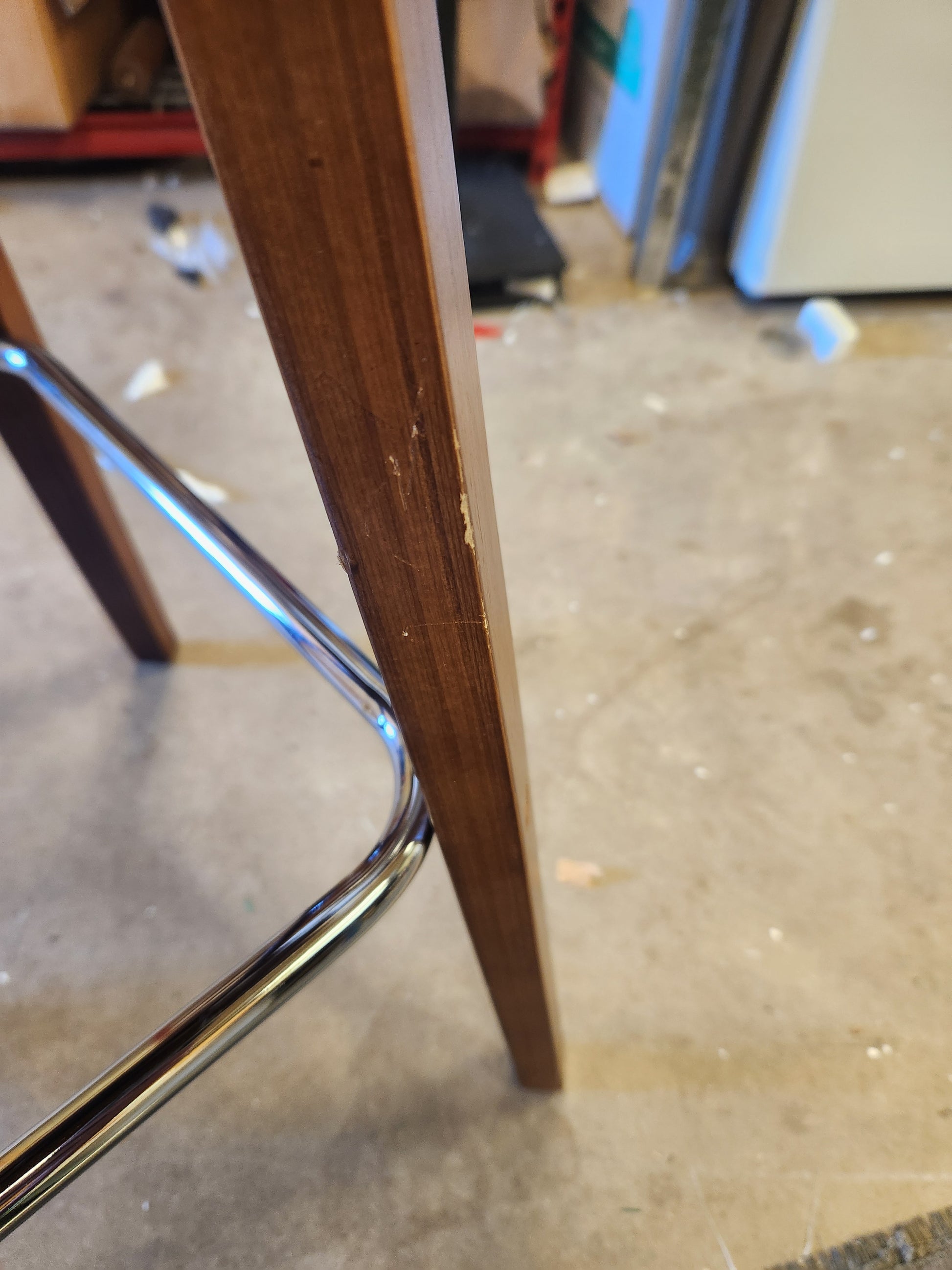 - Sturdy wooden legs with chrome footrest