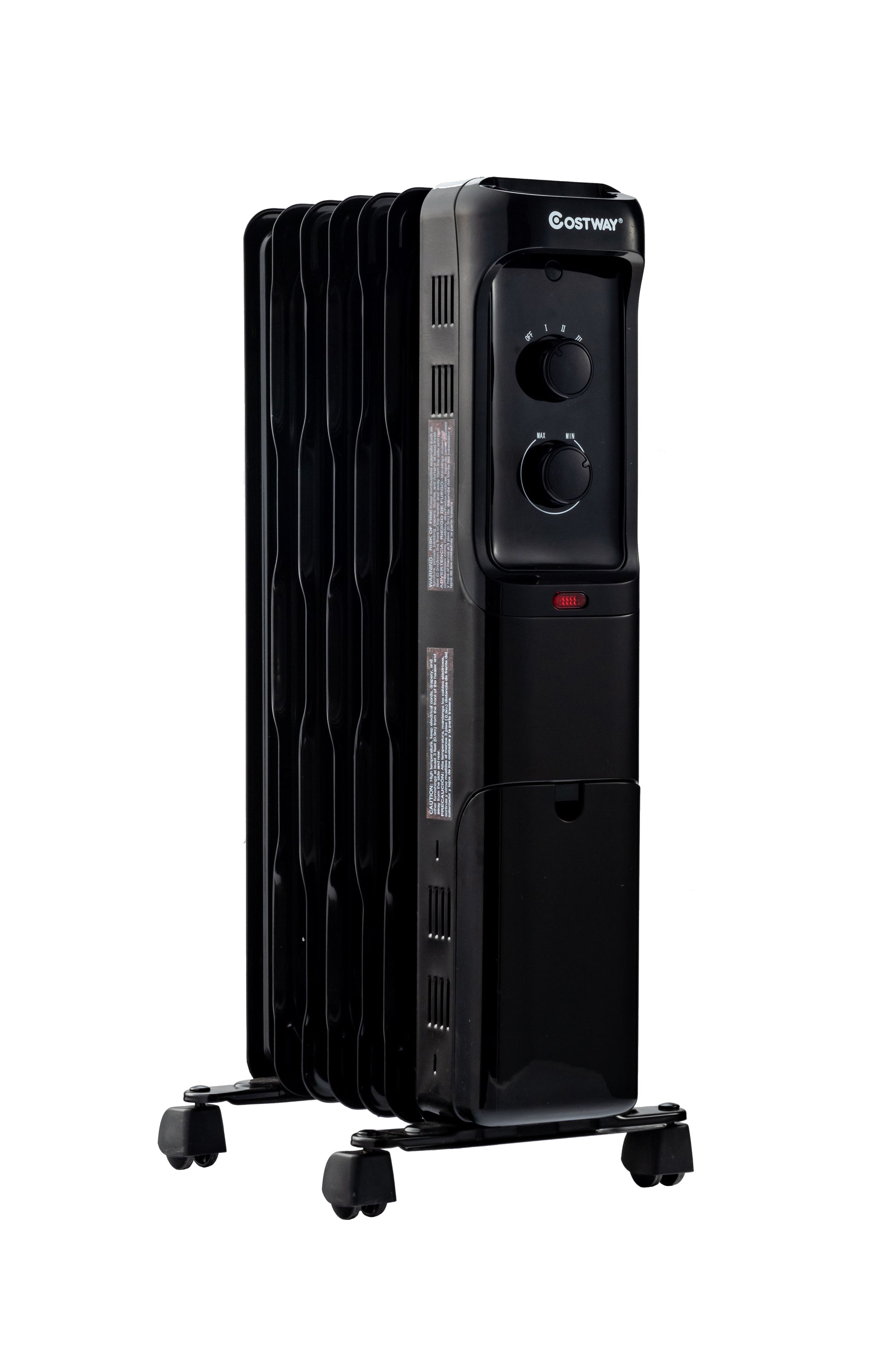 1500W Oil Filled Portable Radiator Space Heater with Adjustable Thermostat-Black