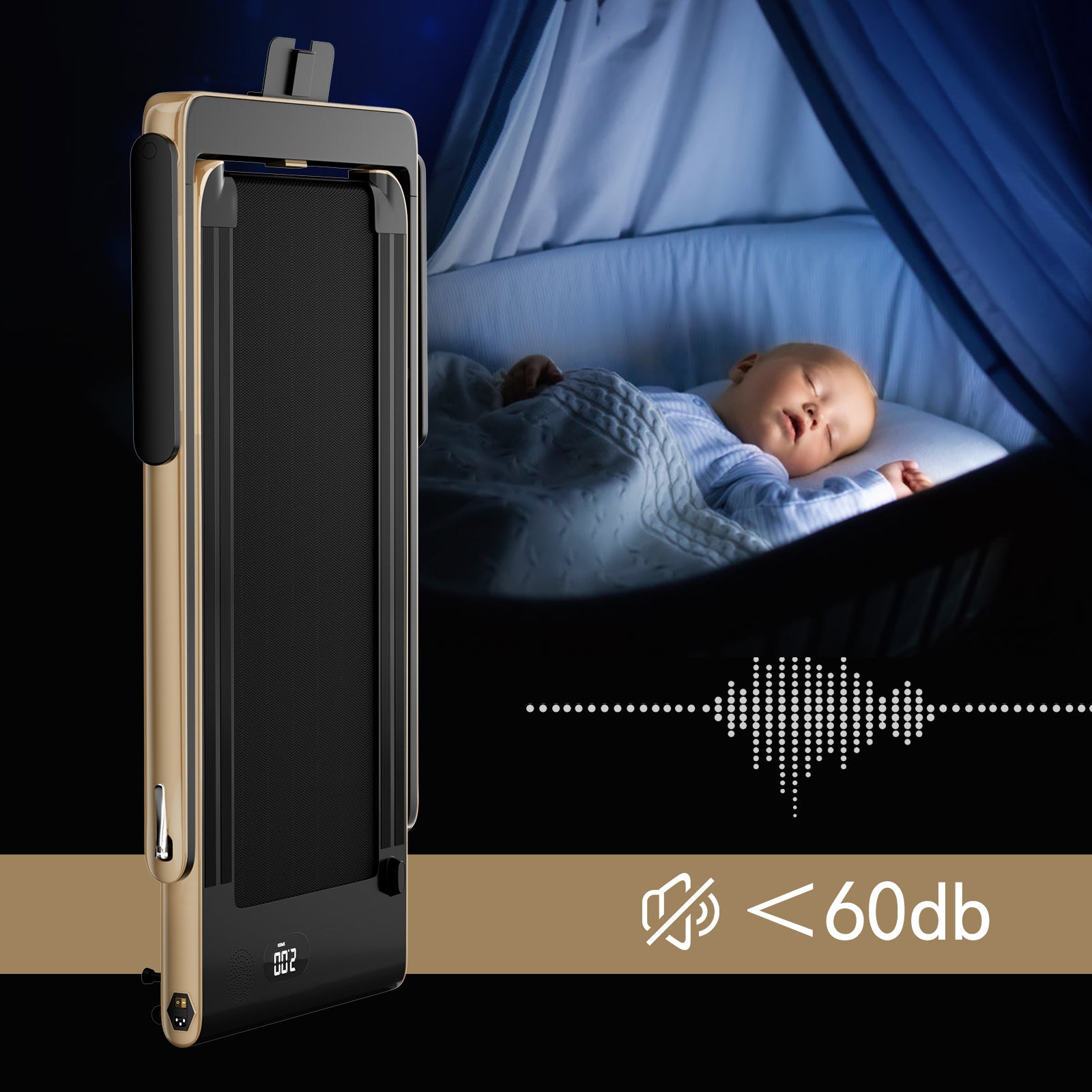 -Built in walking mode (0.6-2.5 mph) and running mode (0.6-7.5 mph)