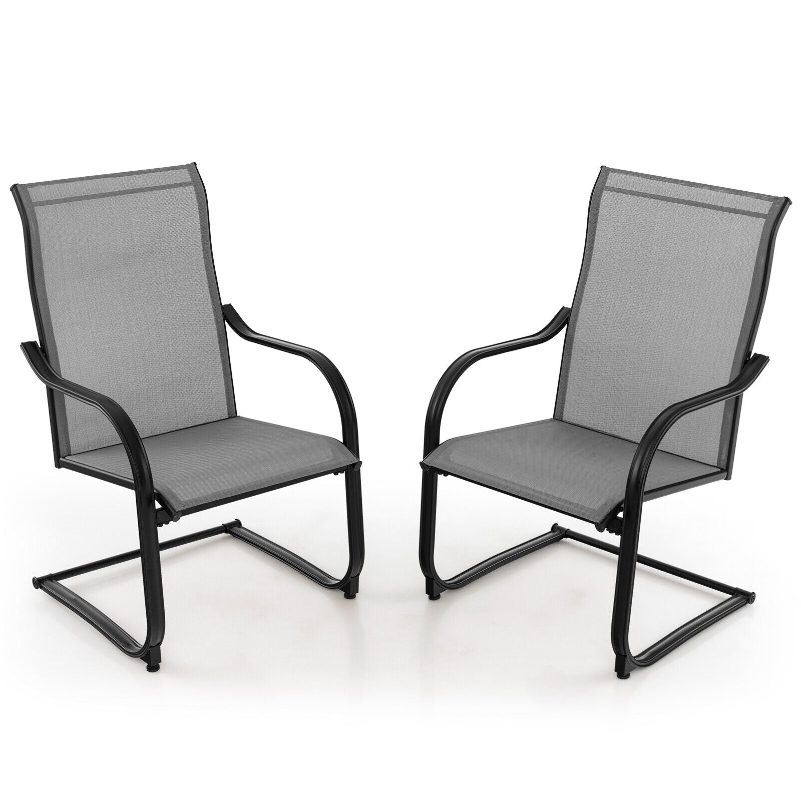 Set of 2, C-Spring Motion Patio Dining Chairs with Breathable Fabric-Gray