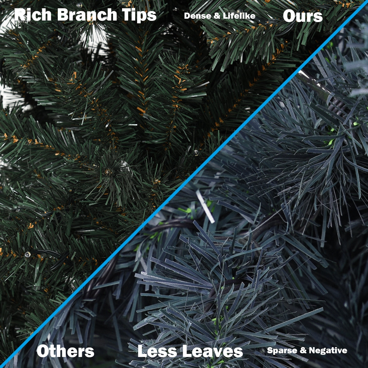 ● Eco-friendly Material: The blades of our Christmas tree is made of high-quality PVC material which offers the anti-crush capacity to it lasting a long time. And the 398 branch tips help emulate a real Christmas tree.