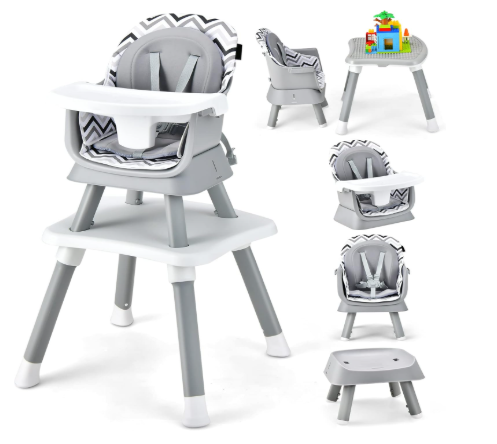 8-in-1 Convertible Baby High Chair with Adjustable Removable Tray-Gray