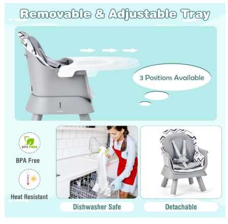 ● Comfortable Sitting Experience: The removable tray is adjustable in 3 positions which meets the need of growing kids. The included seat cushion features double layer which can be used separately for kids of different age stages. Also the seat cushion is padded with sponge for extra comfort.