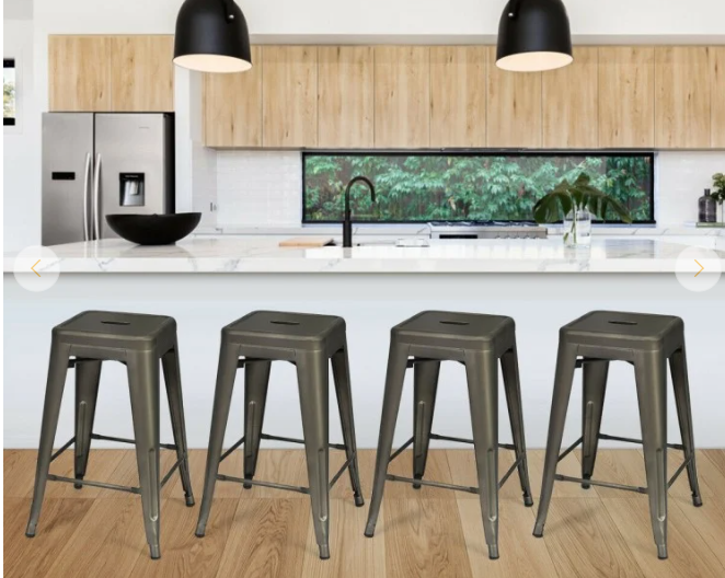 Set of 4, 24 Inch Side Chairs with Rubber Feet and Removable Back, Gunmetal