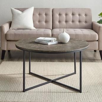 Walker Edison Cora Modern Round Faux Marble Top Coffee Table with X Base, fully assembled