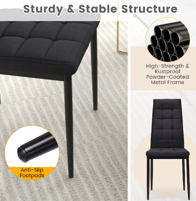 ● Solid Steel Frame and Sturdy Structure: The dining table set is constructed of steel pipes to increase its usage time providing powerful support for your tableware. Made of high-quality MDF board with great texture and wear resistance the tabletop improves the load-bearing capacity of the dining table and prolongs its service life.