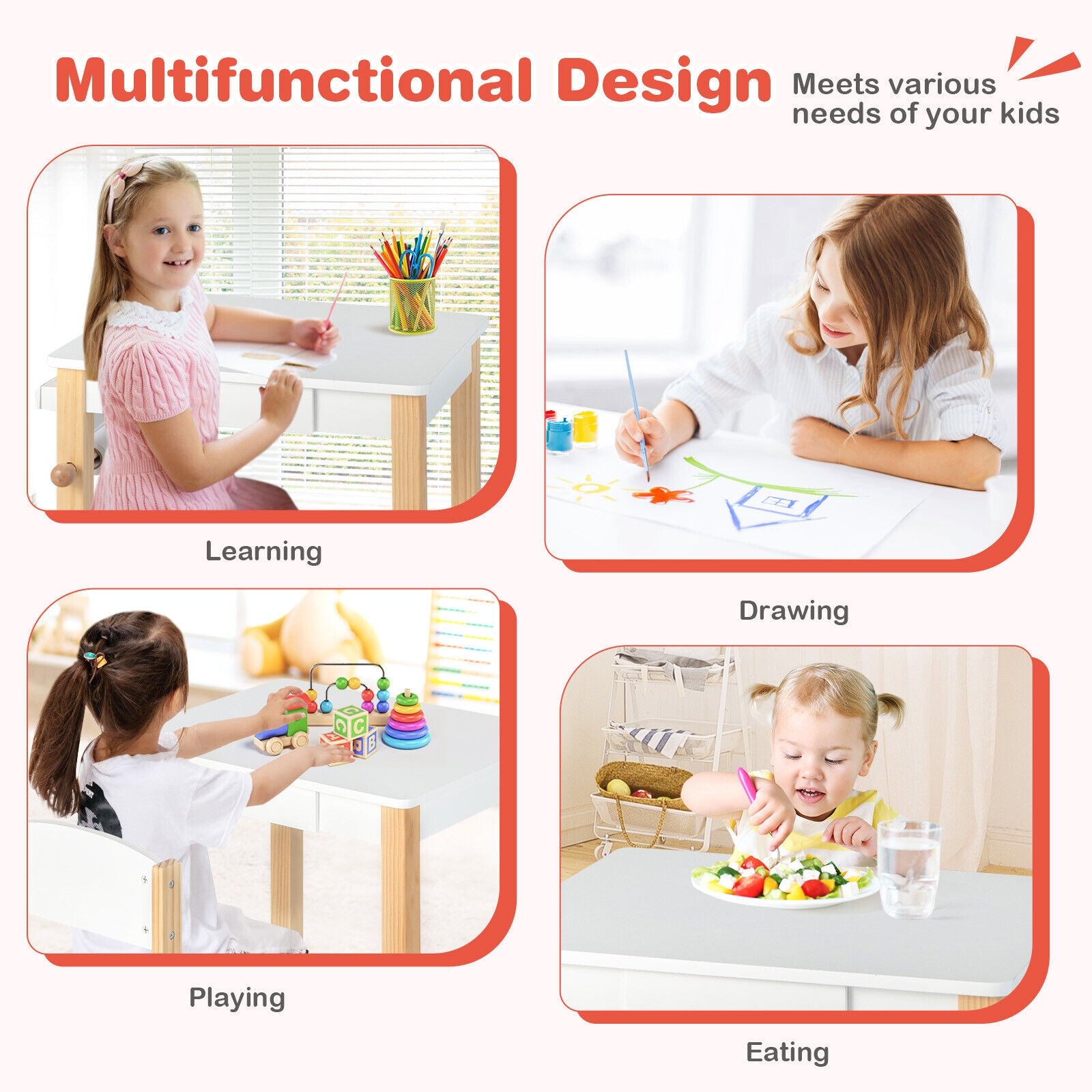 ● Multi Purposes and Wide Use: The toddler table and chair set is suitable for kids aged 3 years old and up enabling them to do everything such as learning drawing playing dining etc. In addition the versatile design makes it match various places such as the kids' room living room classroom etc.