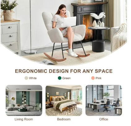 ● Ultra-Soft Upholstery: The nursery rocking chair is upholstered in luxurious teddy fabric that feels gentle against your skin, perfect for relaxing with your baby. The inviting texture and fluffy padding make every feeding and cuddling session a cozy delight.
