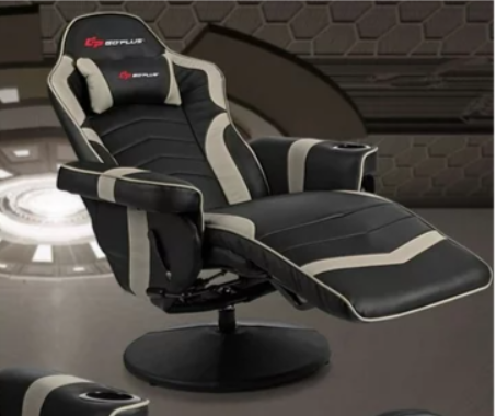 Massage Gaming Recliner Reclining Racing Chair Swivel Gray, fully assembled
