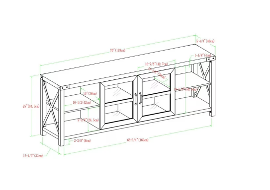 Find the ideal entertainment unit at the intersection between style and functionality with this metal x 70-inch TV console. Putting an industrial spin on the farmhouse design trend this media console features open and closed storage that’s framed with exposed metal accents on the sides and top corners of the piece. Behind the tempered glass front doors with soft close hinges are adjustable shelves. The side shelves are fixed. This media stand features cord management options and can accommodate TVs up to 78-inches.