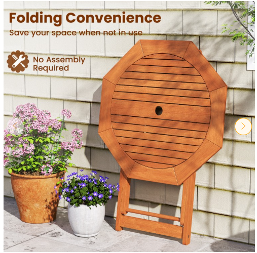 NO TAX - Octagon Folding Patio Table with 2 Inches Umbrella Hole