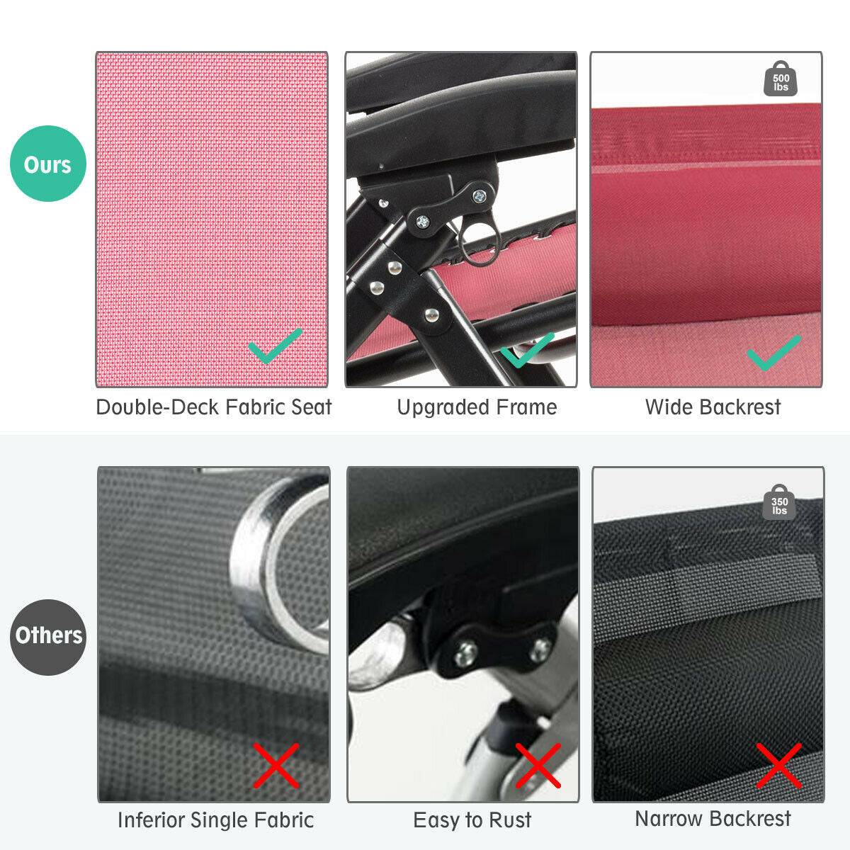 ● 500 lbs Heavy Duty Capacity for Big Guys: Made of superior and thick steel pipe this patio chair has a strong construction to withstand the max weight of 500lbs which is more than twice of a normal adult. As it is powder coated and the fabric is waterproof and sun resistant there will be less rust or damage.