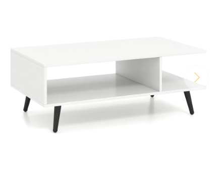 Mid Century Modern Rectangle Coffee Table 2-Tier Accent Table with 2 Open Compartments-White (Scratch and Dent)