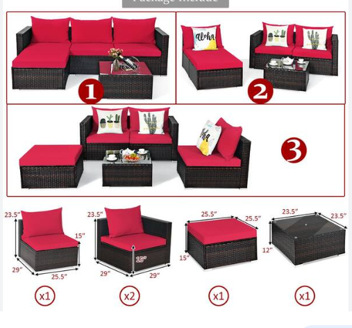 The Sybil 5 Piece Patio Rattan Sectional Furniture Set *FULLY ASSEMBLED*