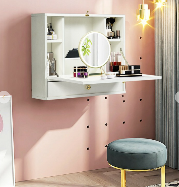 Wall Mounted Folding Laptop Desk Hideaway Storage with Drawer-White, fully assembled